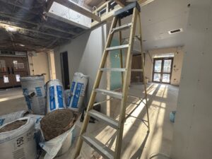 Inside, work on the boilers and electrical wiring has begun, and walls have been removed to create larger rooms that meet the needs of today’s patients.